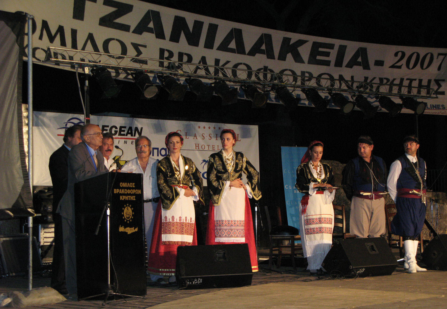 ![]() Στις 11. και 12. Αυγούστου 2007 μέλη του προεδρείου μας επισκέφτηκαν τις εκδηλώσεις "ΤΖΑΝΙΔΑΚΕΙΑ 2007" του Ομίλου Βρακοφόρων Κρήτης στο Ρέθυμνο. Am 11. und 12. August 2007 nahmen einige Mitglieder unseres Vereins an den Veranstaltungen "TZANIDAKIA 2007" teil, die jährlich vom "Omilos Wrakoforon Kreta" in Rethymnon durchgeführt werden.